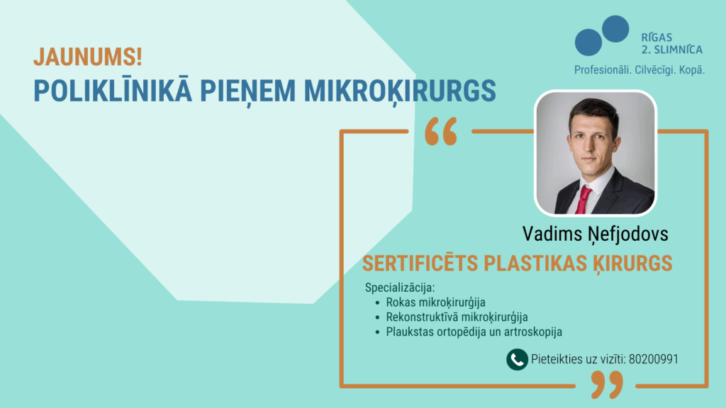 Rīgas 2. slimnīcas poliklīnikā pieņemšanu uzsāk Vadims Ņefjodovs, sertificēts plastikas ķirurgs, kas specializējas: